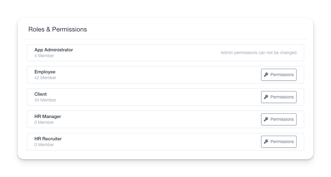 - Default roles like App Administrator, Employee, and Client cannot be deleted.