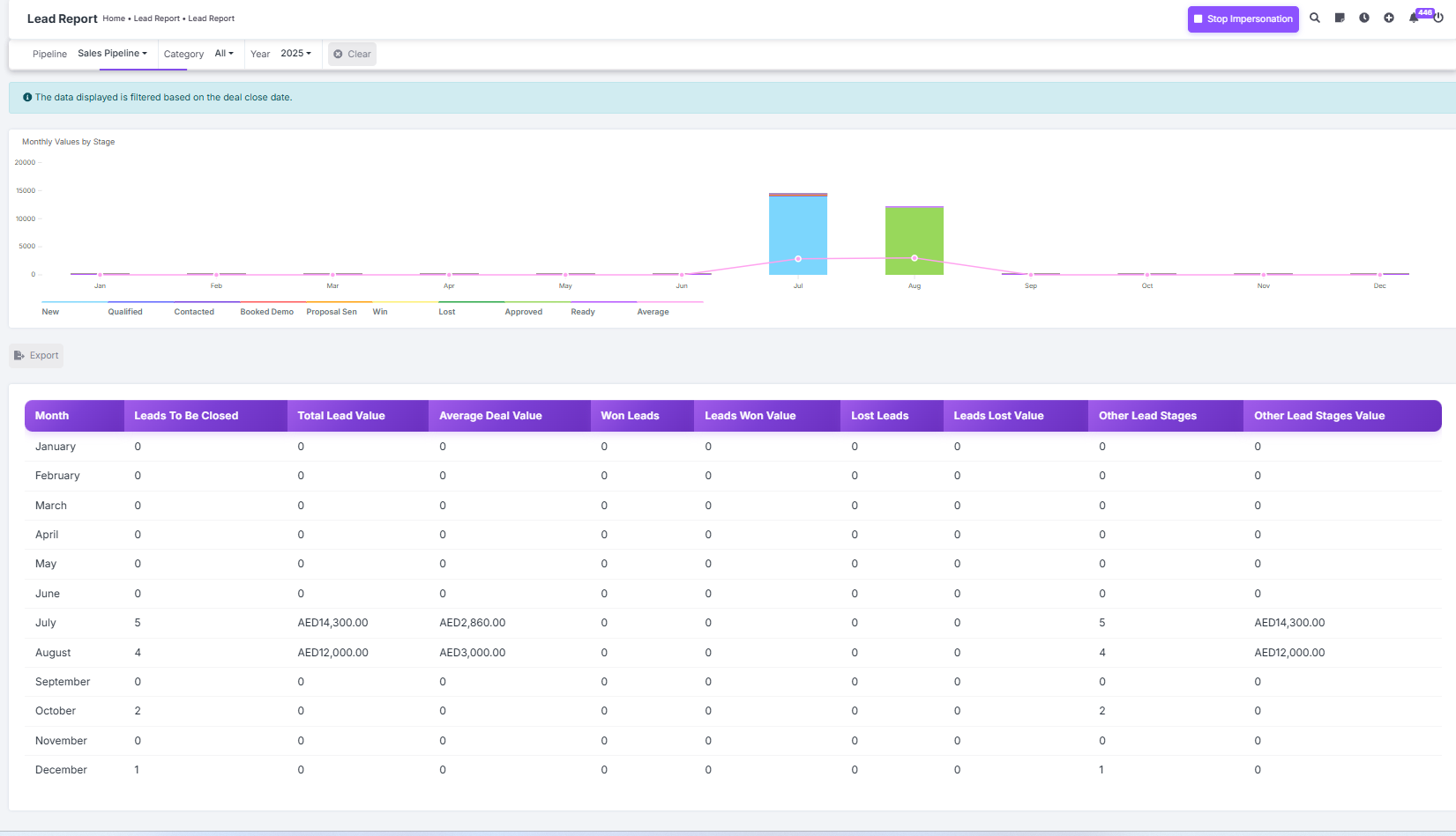 - Total Lead Value – The overall value of leads scheduled for closure.